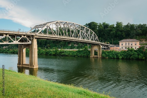 © jonbilous, Fototapeta premium The South Side Bridge and Kanawha River, in Charleston, West Virginia