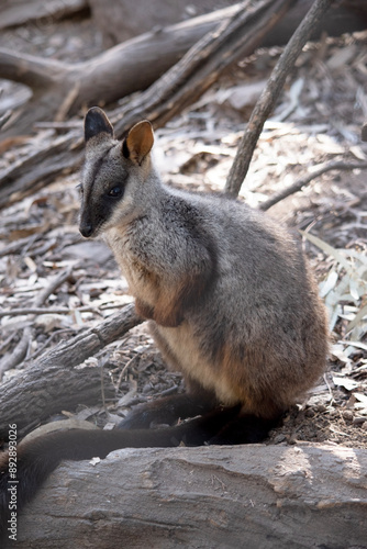Naklejka premium The southern Brush-tailed Rock-wallaby has a characteristic, long, dark tail that is bushier towards the tip.
