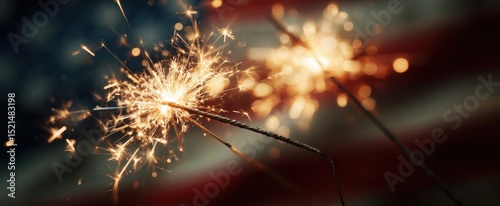 © Studio Nova, Fototapeta premium The Sparkler Glowing Brightly Against the American Flag Background