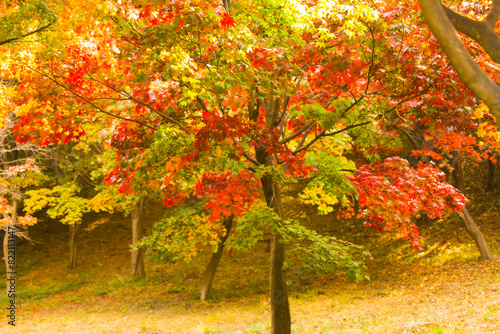 © 상학 이, Fototapeta premium the spectacular scenery of maple trees with beautiful autumn leaves