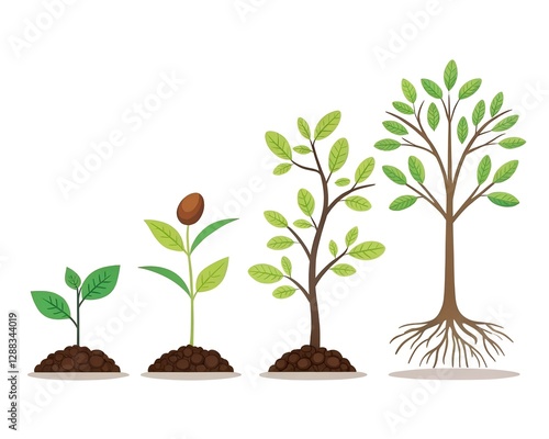 Fototapeta premium The stages of a plant's growth, from seed to tree.