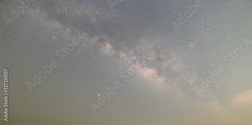 Obraz premium The stars and the milky way in the dark sky at night are very beautiful.