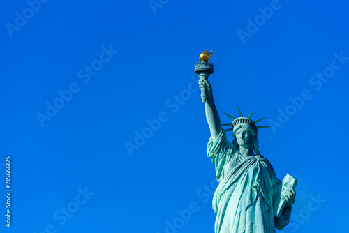 © Simon Dannhauer, Fototapeta premium The statue of Liberty at a sunny day with blue sky, New York City, USA