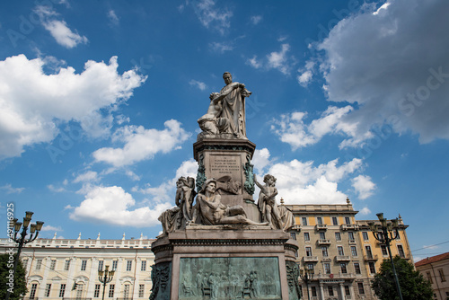 © Italyteam, Fototapeta premium The statue of the italian politician Camillo Cavour in the Carlo Emanuele II Square
