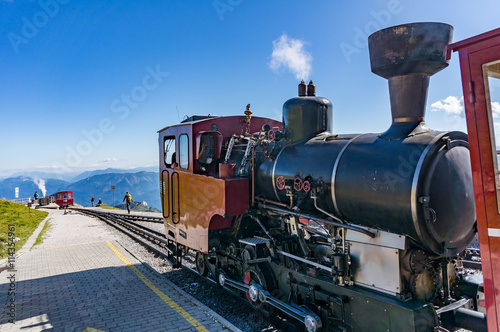 Naklejka premium The steam train takes tourists to Schafberg mountain peak in the