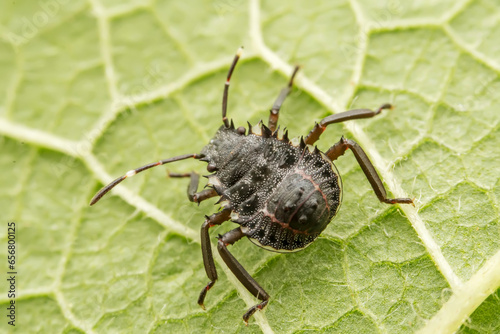 Fototapeta premium The stinkbug family insects inhabit wild plants