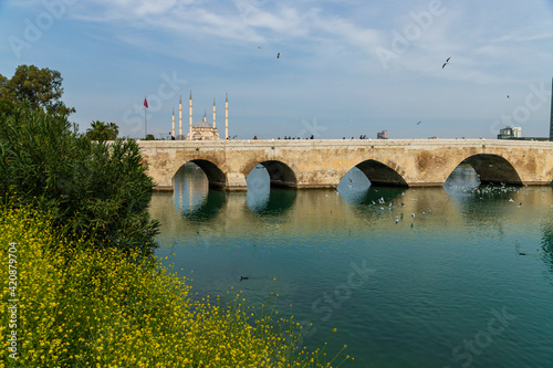 © mehmetkrc, Naklejka premium The Stone Bridge and Sabanci Mosque, Adana, Turkey