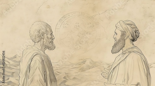 © T Studio, Fototapeta premium The Story of Abraham Preparing to Sacrifice Isaac on Mount Moriah - Biblical Illustration