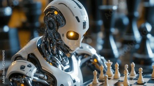 Fototapeta premium The Strategic Mind: A Futuristic Robot Masterfully Plays Chess