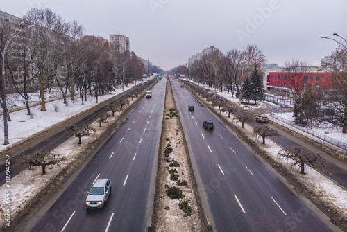 Naklejka premium The streets of Chisinau in winter. Aerial view