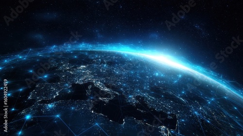 Fototapeta premium The stunning view of Earth illuminated by digital connections at night.