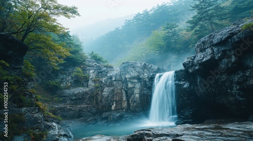 Naklejka premium The stunning view of the cliffs and waterfalls at the scenic Odaesan National...