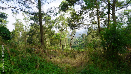 © RifaldiMuhammadSalim, Naklejka premium The stunning view of the green trees that decorate the mountains, creates a beautiful and calm natural atmosphere