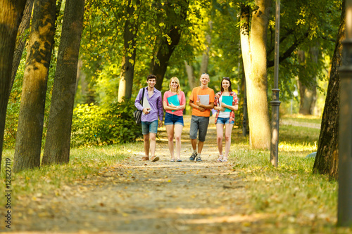 Fototapeta premium the successful group of students with books in the Park