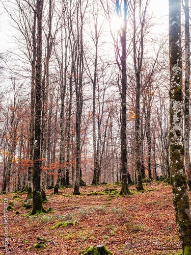 © Heart in pictures, Fototapeta premium the sun appears among the tall trees of urbasa