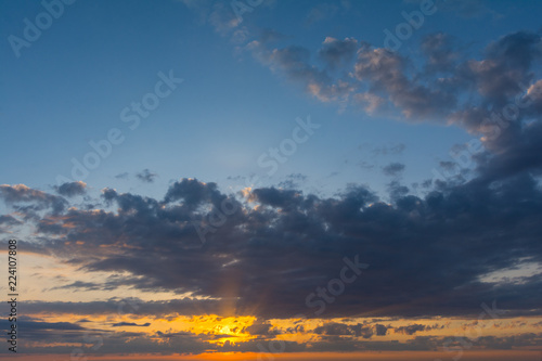 © Moroshka, Naklejka premium The sun colored the sky and clouds at dawn.