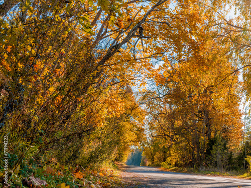 © vasilvas, Obraz premium The sun, fall, wood, road.
