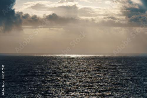 Fototapeta premium The sun is casting its rays through the clouds onto the ocean