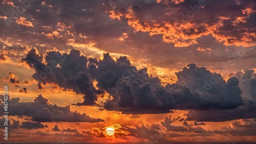 © Tisha, Naklejka premium the sun is setting on the horizon of the sky