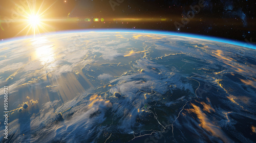 Obraz premium The sun is shining on the Earth, creating a beautiful and serene atmosphere