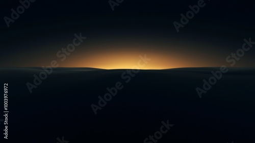 Obraz premium The sun is shining over a dark and vast landscape, creating a warm glow on the horizon. The scene is mysterious and evocative, suggesting a sense of adventure and the unknown