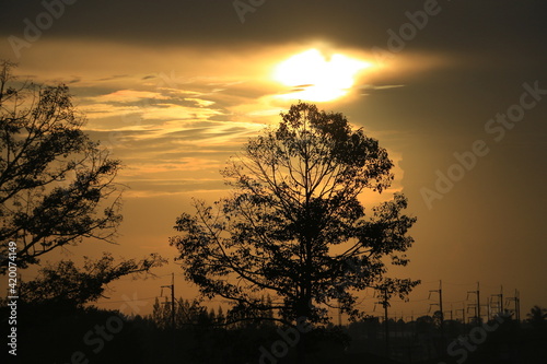 Fototapeta premium The sun rises with trees and sky