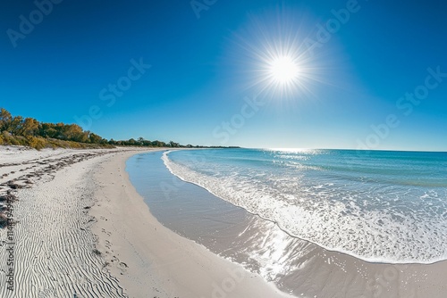 Fototapeta premium The sun's rays create a stunning shine in the sky as they illuminate the bright ocean.