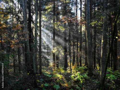 Fototapeta premium The sun's rays in the autumn forest.