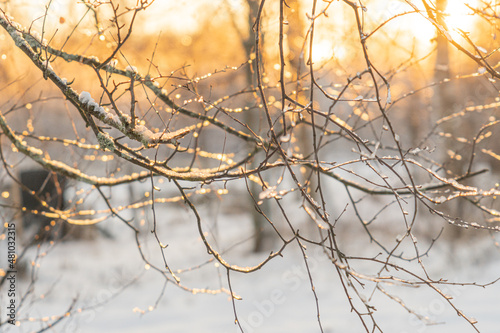 © M.V.schiuma, Obraz premium The sun's rays make their way through the branches of trees.. Winter nature.close up..