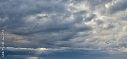 © Olga, Obraz premium The sun's rays through a cloudy sky Background