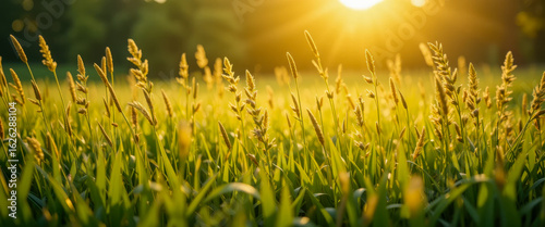 © Rajesh, Fototapeta premium The sun sets over a field of wheat, creating a beautiful landscape.