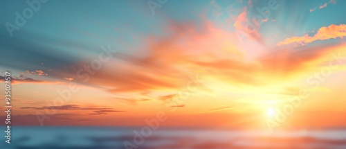 Fototapeta premium The sun sets over the ocean, adorned with clouds in the sky, as a plane...