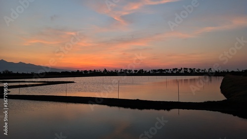 © Niam, Fototapeta premium The sun sets over the ponds and beautiful sky