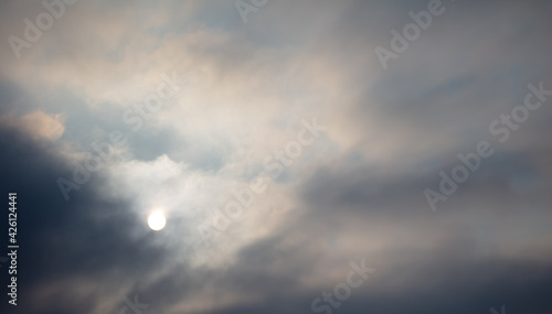 Obraz premium The sun shines behind the clouds during