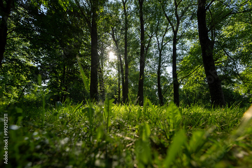 © rsooll, Fototapeta premium the sun shines through the green foliage of the trees in spring