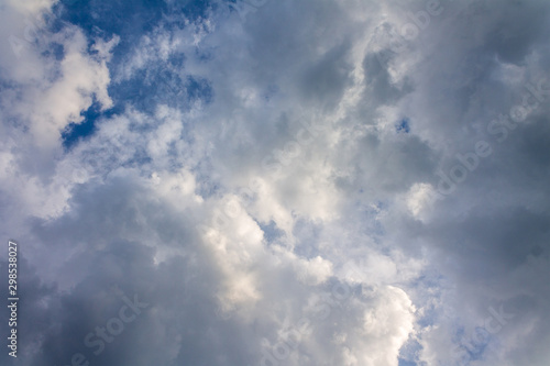Obraz premium the sun shining through the clouds against the blue sky, light clouds in the sky