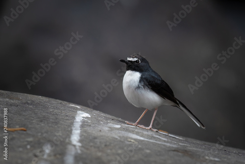 © Totok kazpe, Obraz premium The Sundanese forktail bird is a type of water bird that usually lives in high mountain areas with cool climates. The photo depicts the Sundanese forktail bird looking for food in a rocky river.