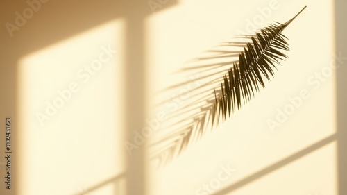 Obraz premium The Sunlight Filtering Through a Window Creates a Playful Shadow of a Palm Leaf on a Soft Beige Wall