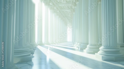 © Chingiz, Fototapeta premium The sunlight shines through columns in a long and white corridor