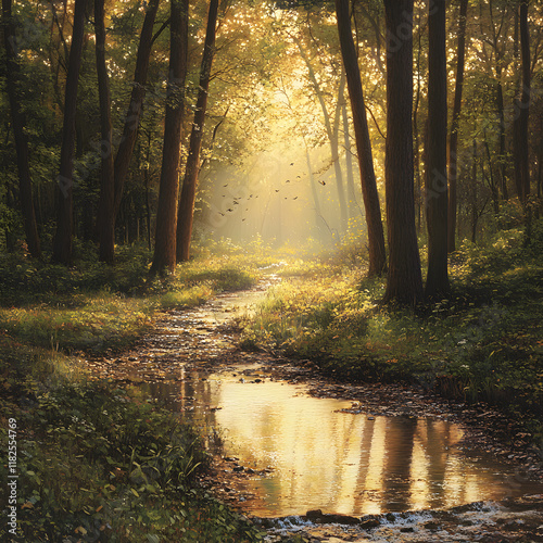 © Brett, Fototapeta premium The Sunlit Interlude: Nature's Breath Between the Whispering Trees