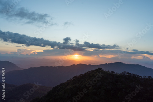 © weerapol, Fototapeta premium The sunset on the mountain is a beautiful light