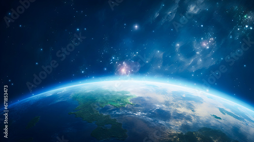 Fototapeta premium The surface of planet Earth in deep space. Wallpaper from dark space. Satellite view.