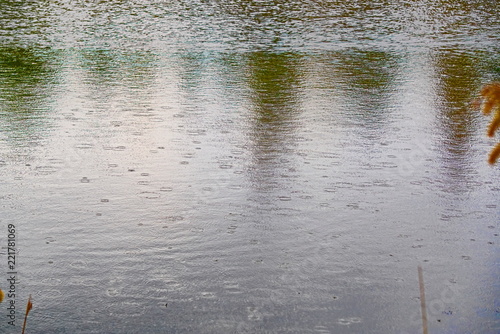 © fotych, Fototapeta premium The surface of the lake during the rain.