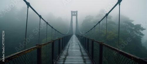 © GoDress, Obraz premium the suspension bridge disappeared in the mist