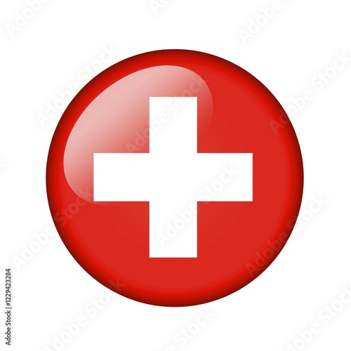 Obraz premium The Swiss flag. Round glossy icon. Isolated on white background