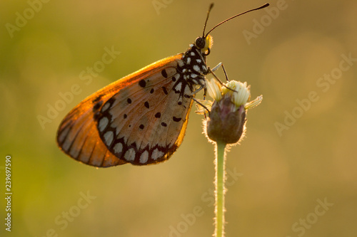 © Somprasong, Fototapeta premium The Tawny Coster butterfly (Acraea violae) on flower and green nature