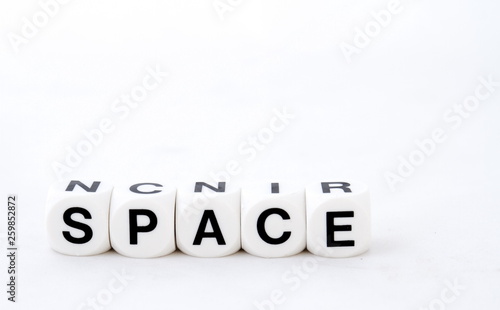Obraz premium The term space displayed in black letters printed on white squares isolated on a white background image with copy space