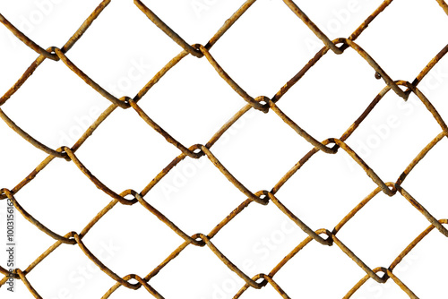 © Gudman, Fototapeta premium The texture of the metal mesh on a white background. Torn steel, metal mesh with holes