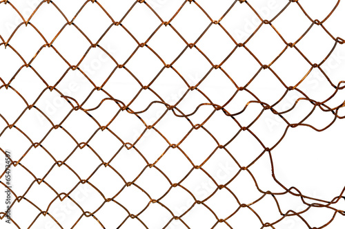 Fototapeta premium The texture of the metal mesh on a white background. Torn steel, metal mesh with holes