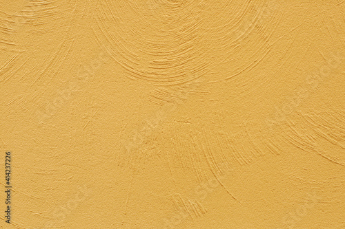 © Natalia, Obraz premium The texture of the plastered yellow wall. Decorative plaster using rounded stripes technique. Trending color